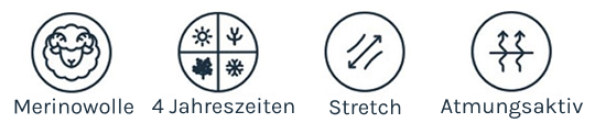 Merinoschafe liefern dank ihrer Hautfalten und ihres dichten Vlieses bis zu fünf Kilogramm Wolle pro Jahr. Nach der Selektion und dem Waschen ist die daraus gewonnene hochwertige Merinowolle zehnmal feiner als herkömmliche Wolle, superweich und kratzfrei. Die Fasern werden gekämmt, versponnen und zu Kleidung verarbeitet, die atmungsaktiv ist, sich der Körpertemperatur anpasst und antibakteriell wirkt. Merinowolle bleibt mit etwas Lüften frisch und bietet ganzjährig optimalen Tragekomfort.