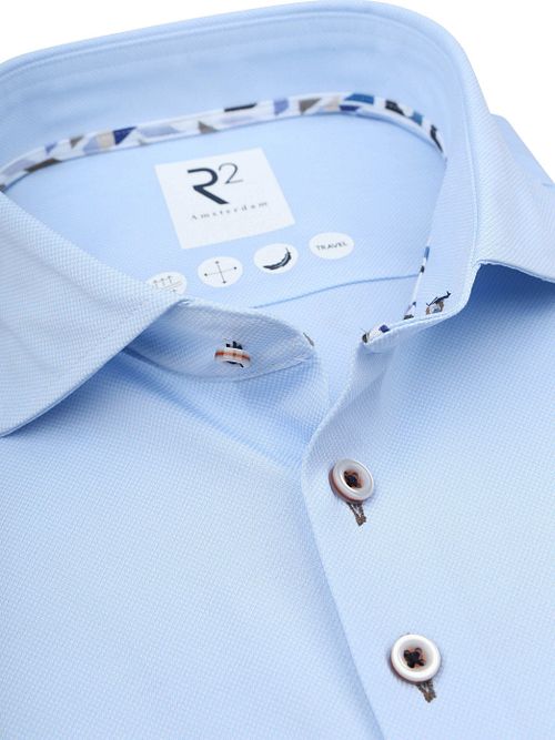 R2 Amsterdam Hemd Technical Knitted Dobby Hellblau